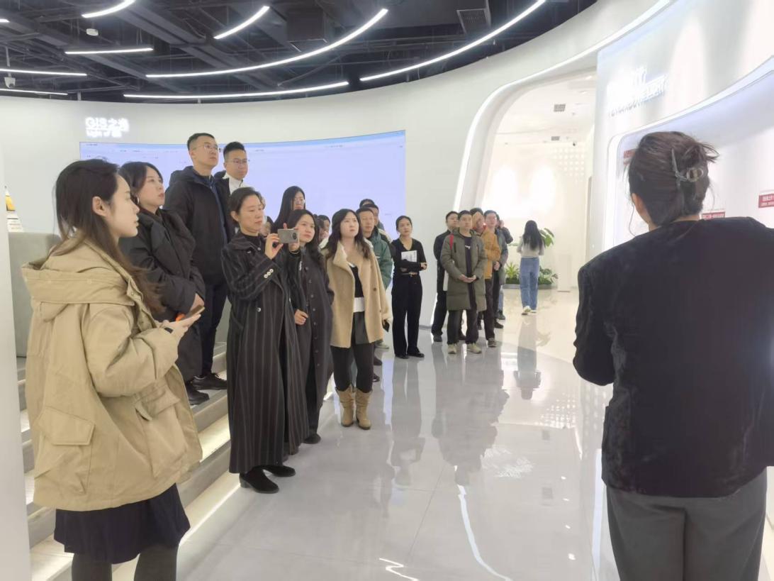 参访团队首先参观了超图展厅。在高级总监王璐的讲解下,同学们深入了解了超图成立以来的发展历程,以及其在相关领域的创新成果。SuperMap软件作为亚洲第一大、全球第二大GIS软件,其应用场景与发展前景引发了同学们的浓厚兴趣。