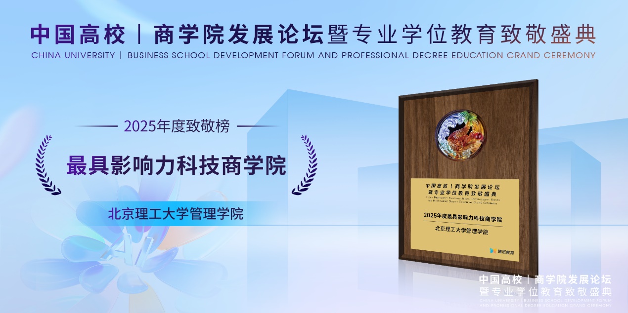 喜讯 | 北理工管院荣获“2025年度最具影响力科技商学院”荣誉